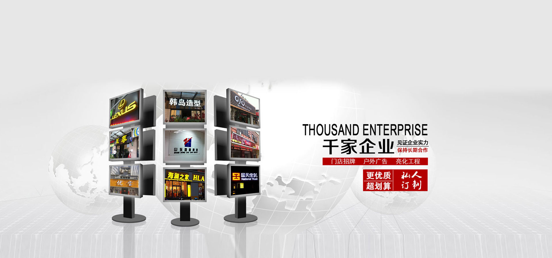 承德市聯拓廣告傳媒有限公司 承德市聯拓廣告傳媒有限公司 是一家專業從事各類戶外廣告策劃、設計、制作、安裝、代理、發布、服務的綜合性廣告公司。 公司主營業務有:大型戶外廣告牌、霓虹燈廣告牌、亞克力發光字、燈箱廣告及各類戶內外標識牌工程、大樓夜景泛光照明工程等。堅持用產品和服務打動每一位客戶,即以精湛的工藝、優質的服務、務實的精神,專業真誠地對待我們的客戶,滿足客戶的需求。擁有一批經驗豐富的設計師及工程制作、安裝人員,是一支專業程度高、勇于創新、團結的團隊,致力為客戶提供全程個性化...
